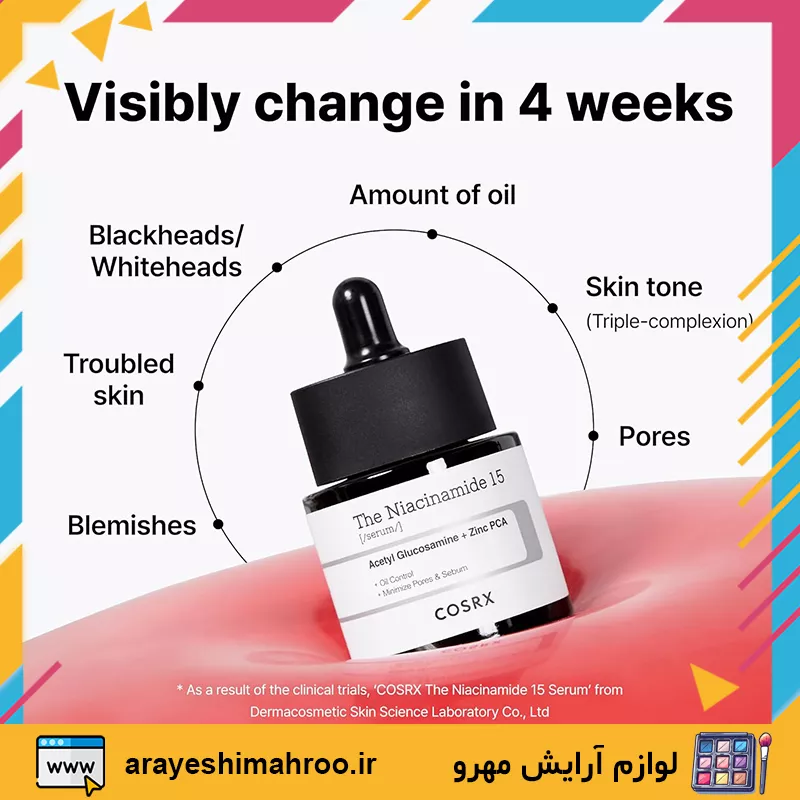 حاوی 15٪ نیاسینامید برای کاهش چربی و بهبود لک