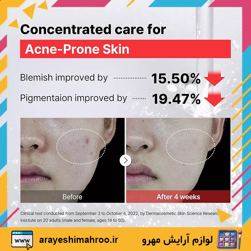 این سرم از نظر عدم انسداد منافذ، سازگاری پوستی و اثربخشی کنترل سبوم به صورت بالینی بررسی شده و در استفاده مستمر، پوستی صافتر، روشنتر و متعادلتر ایجاد میکند.