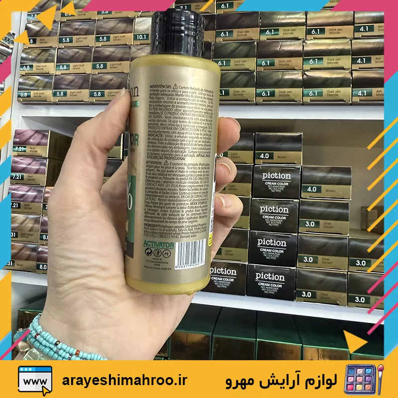 اکسیدان بدون آمونیاک پیکشن ۶درصد PICTION oxidant 6 model 20vol که با نام «اکتیویتور» نیز شناخته میشود، محصولی حرفه ای و ایمن ساخت اسپانیا است که با فرمولاسیونی پیشرفته و گیاهی، برای رنگ کردن مو بدون آسیب طراحی شده است.