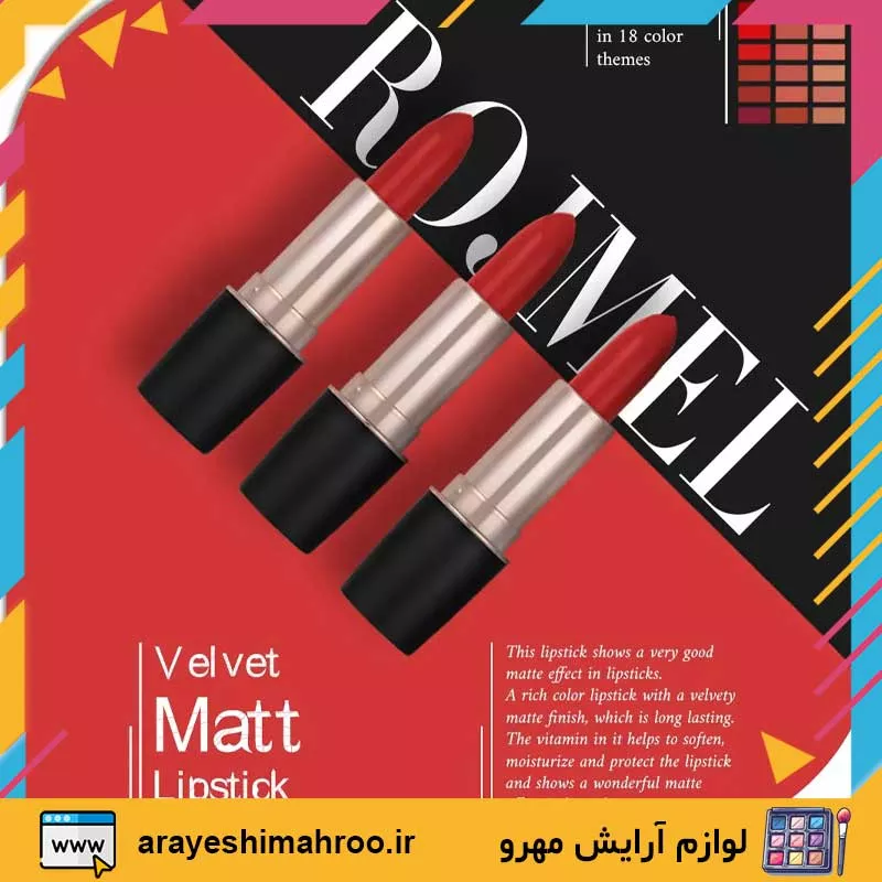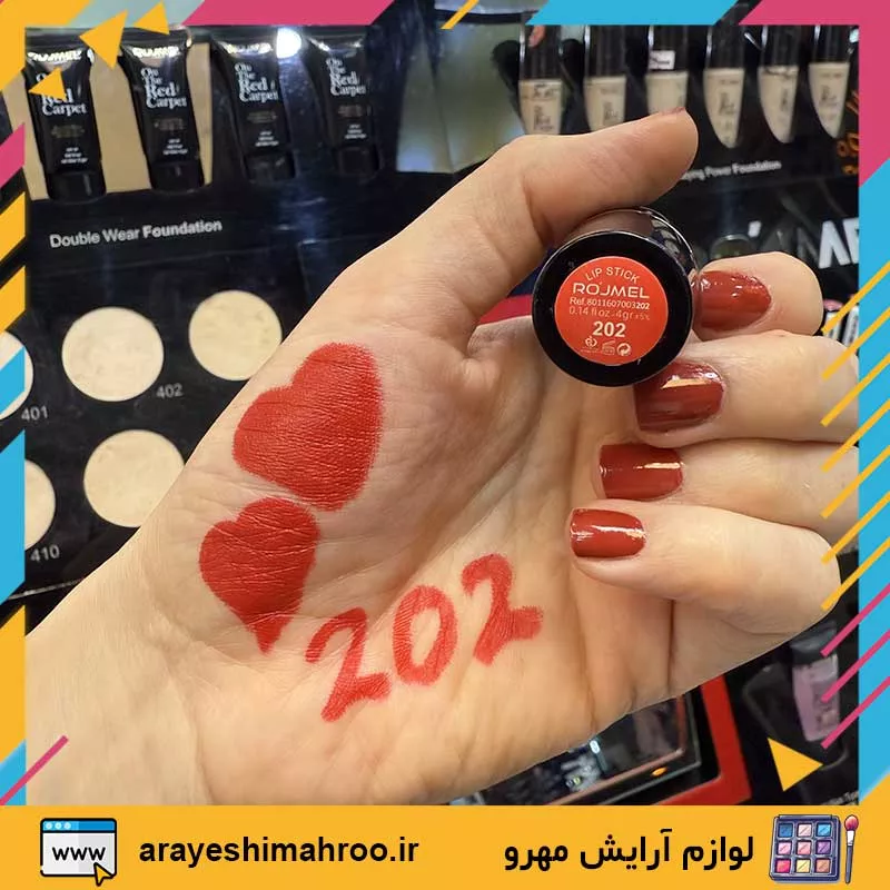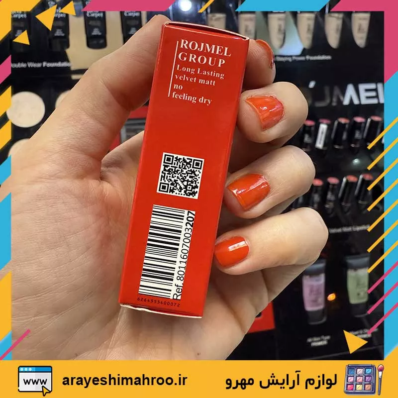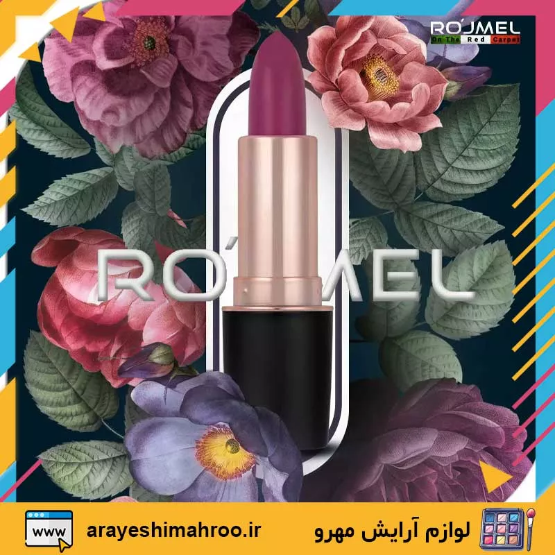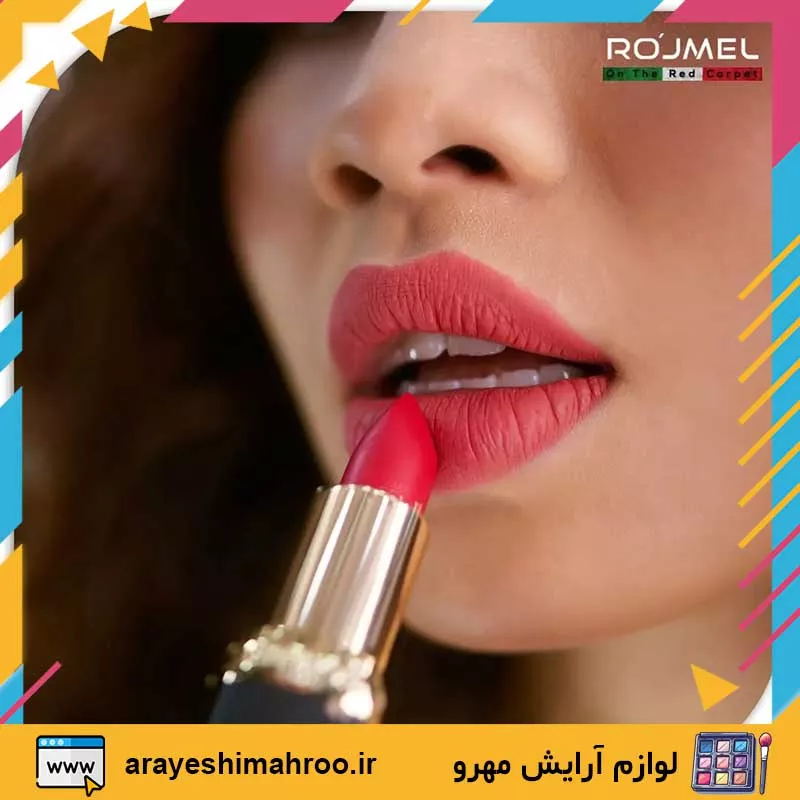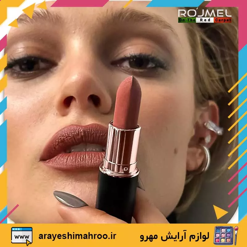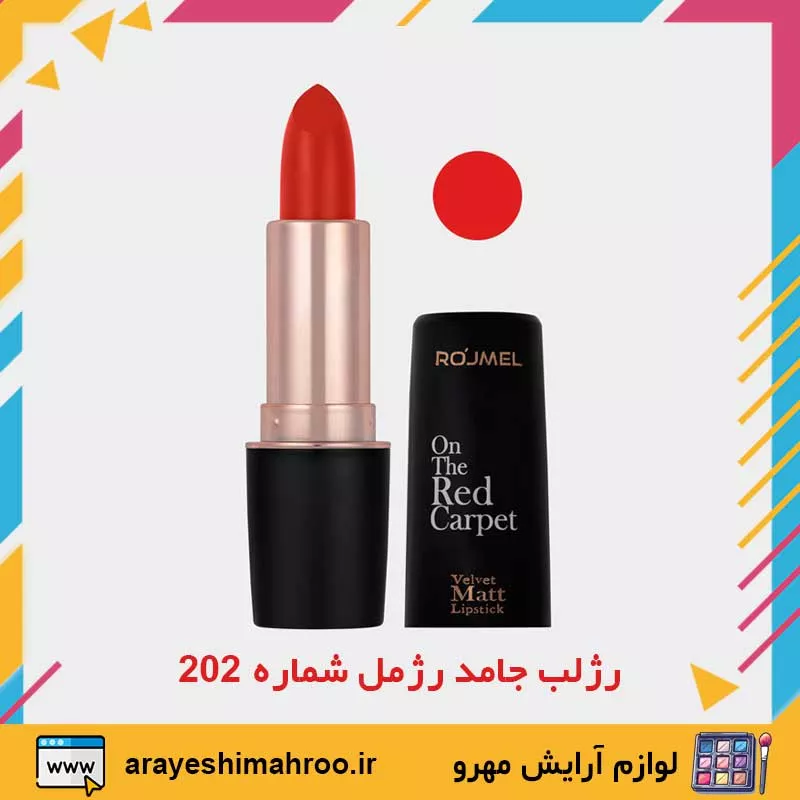 رژلب جامد رژمل شماره ۲۰۲ (ولوت مت رژمل) ROJMEL Velvet Matt Lipstick 202 با بافت نرم و بسیار سبک، جلوهای مات و مخملی به لبها میبخشد و از خشکی و ترکخوردگی جلوگیری میکند.